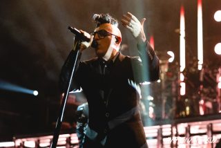 The evening began with a video in which Keenan, in character and dressed like an unholy conglomeration of Pee Wee Herman and Max Headroom, warned that any audience members violating the no-cell-phones policy would be ground into Spam. (No, really.) It ended with an all-band-members-on-deck super-jam through Puscifer’s “Grand Canyon.” And the sets in-between flew by.