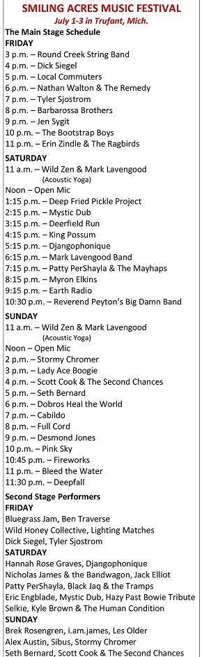 After staging its inaugural festival last year, Smiling Acres returns Friday through Sunday over the Fourth of July weekend.