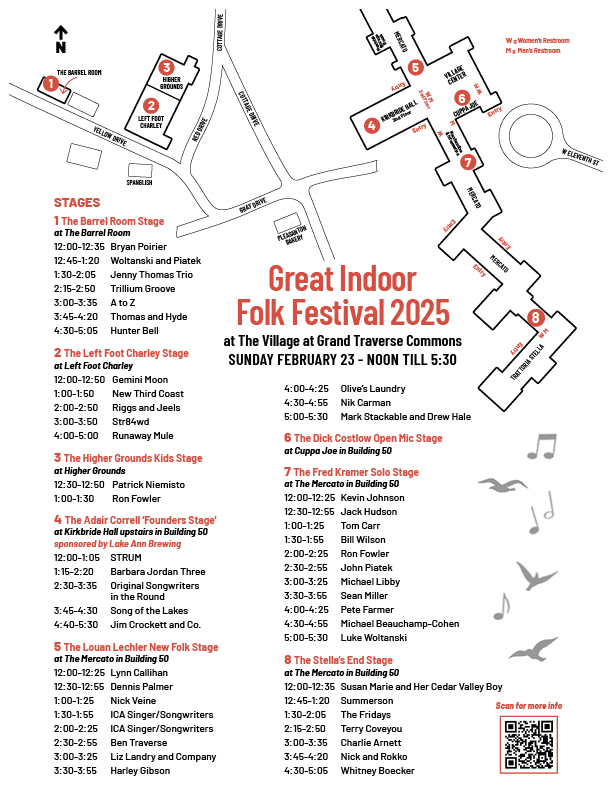 The festival – which runs from noon to 5:30 p.m. Feb. 23 – boasts a mix of returning regional favorites and emerging artists, from the Jim Crockett Band, Song of the Lakes and New Third Coast to up-and-coming acts such as Ben Traverse, Trillium Groove and Gemini Moon (a spinoff of the band FlyLiteGemini).