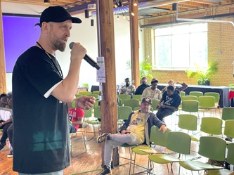 Music Econ Summit: Monk Matthaeus addressing attendees on Saturday.