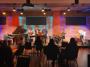 Team Local Spins Jazz Night: The Jeff Haas Trio w/ Laurie Sears, Rob Smith and artists Lisa Flahive. (Photo/LocalSpins)