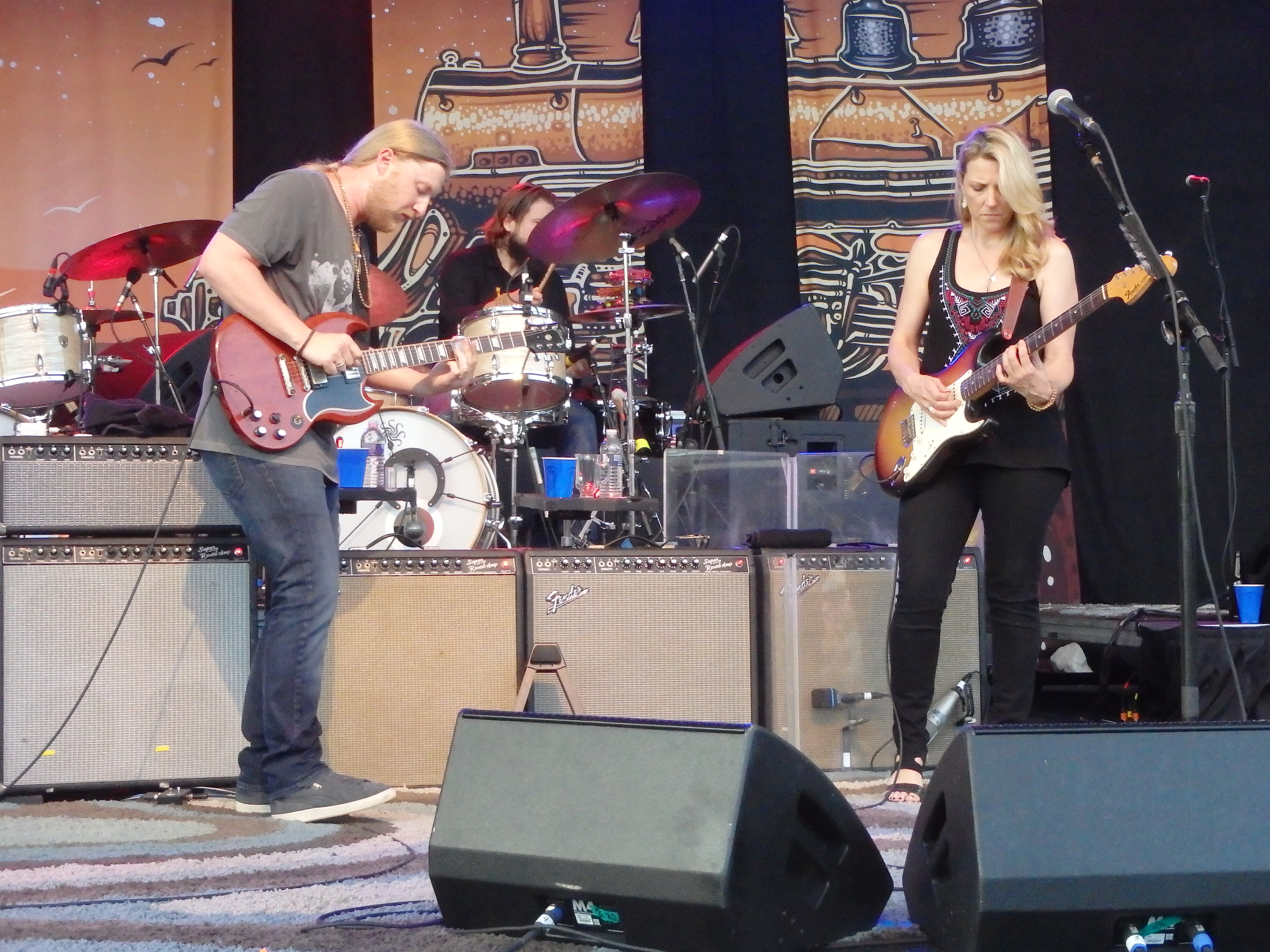 Playing to a sold-out amphitheater on a sun-splashed night, Susan Tedeschi and Derek Trucks led their jam-driven band through a guitar-fueled evening.