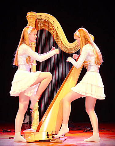 One-Harp Magic: The twins in concert. (Courtesy Photo)