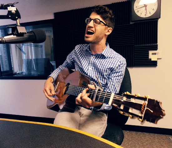 He demonstrated that – without some of the aforementioned unusual sound effects – on Local Spins Live this week, performing the song “Afterword” on acoustic guitar in the studio at News Talk 1340 AM (WJRW). Listen to the podcast here and watch video of that performance below, with a photo gallery from Ribbons of Song’s Local Spins Live appearance.