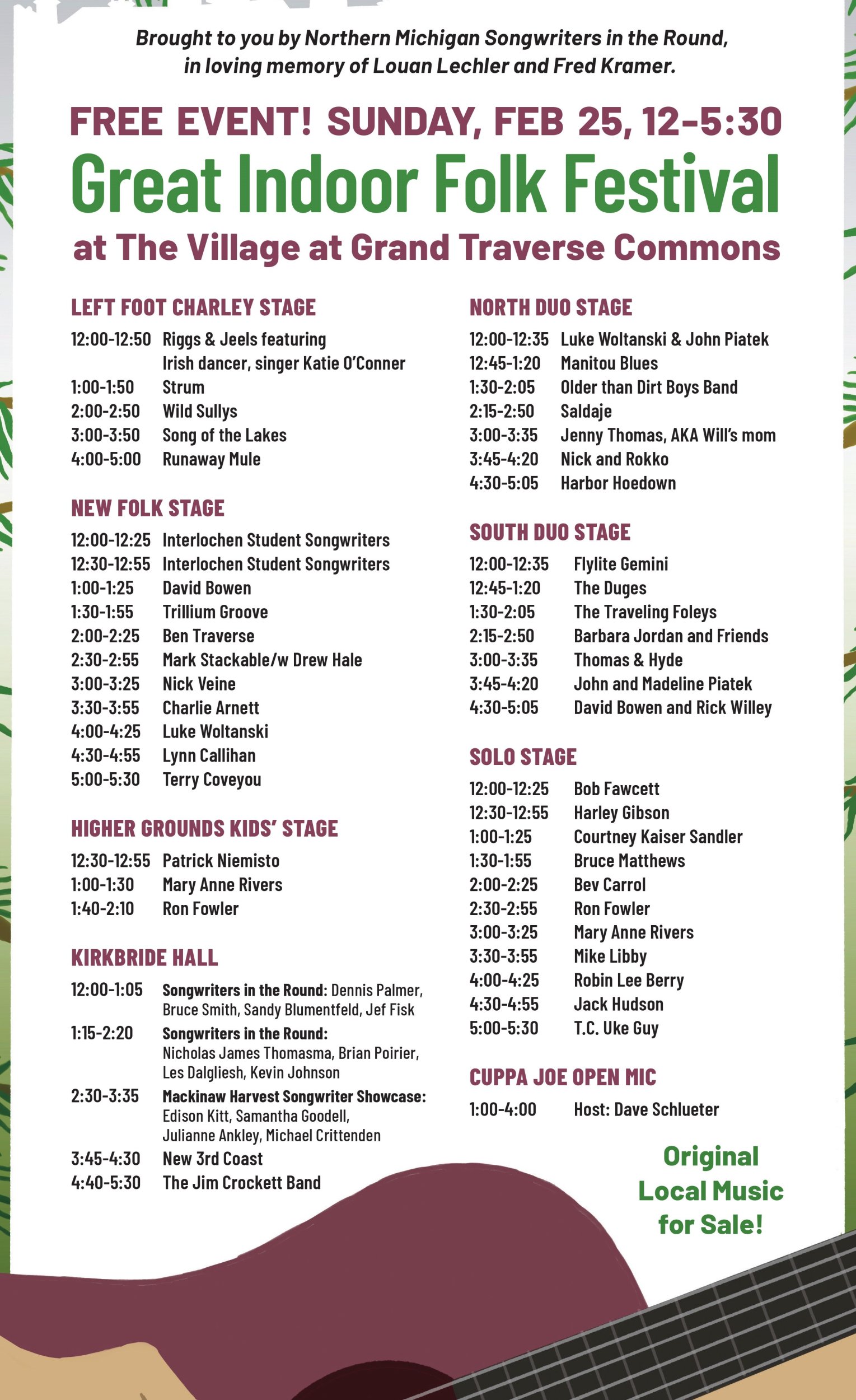 With more than 100 musicians on board and more than 50 performances spread across eight different “stages,” Traverse City’s annual Great Indoor Folk Festival will once again roll out in those hallways on Feb. 25, the last Sunday of the month.