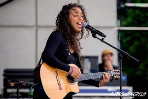 Lansing-area singer-songwriter Taylor Taylor warmed up the crowd with a precipitation-free opening set of jazzy acoustic pop. Going solo with her acoustic guitar, the 20-year-old performer demonstrated considerable poise as she worked her way through a 30-minute mix of covers (including Leonard Cohen’s oft-visited “Hallelujah”) and original material. She’ll return to the Gardens on Aug. 22 with her band for Tuesday Evening Music Club.