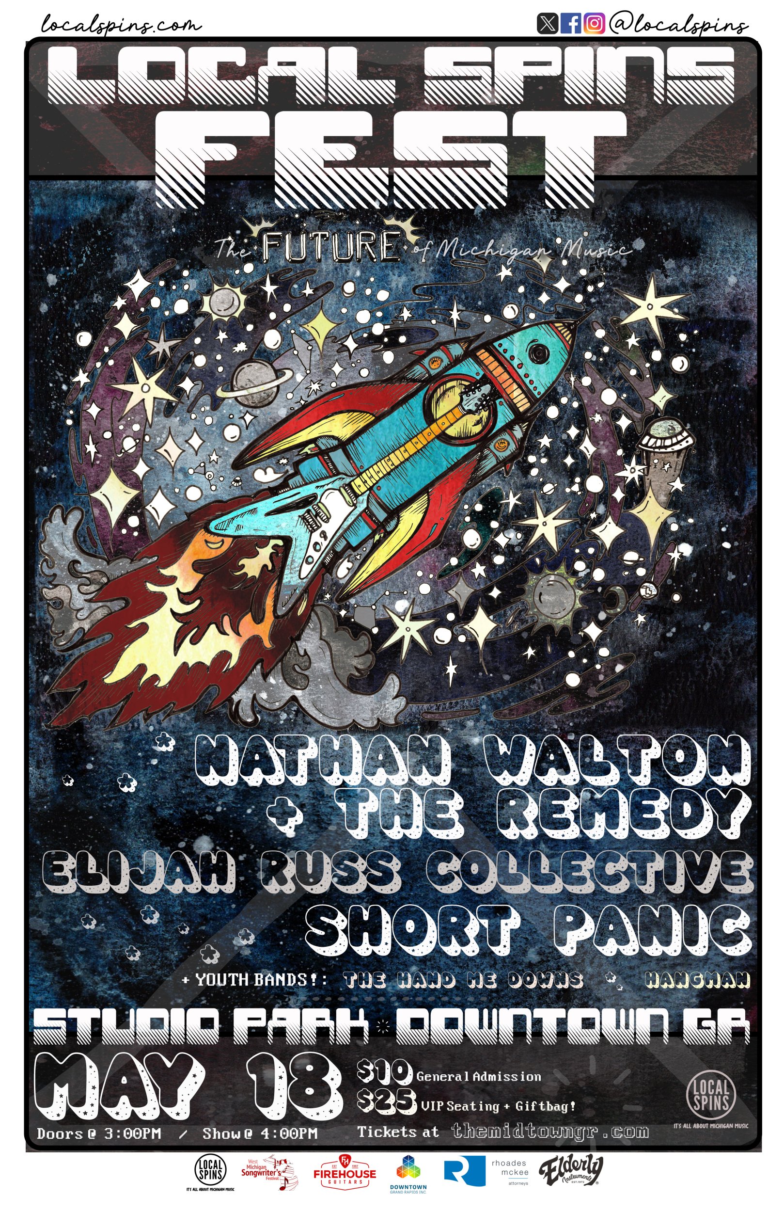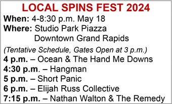 (Local Spins Fest is sponsored by Daniel Terry, Firehouse Guitars, Downtown Grand Rapids Inc., Elderly Instruments, Rhoades McKee and Studio Park/Midtown.)