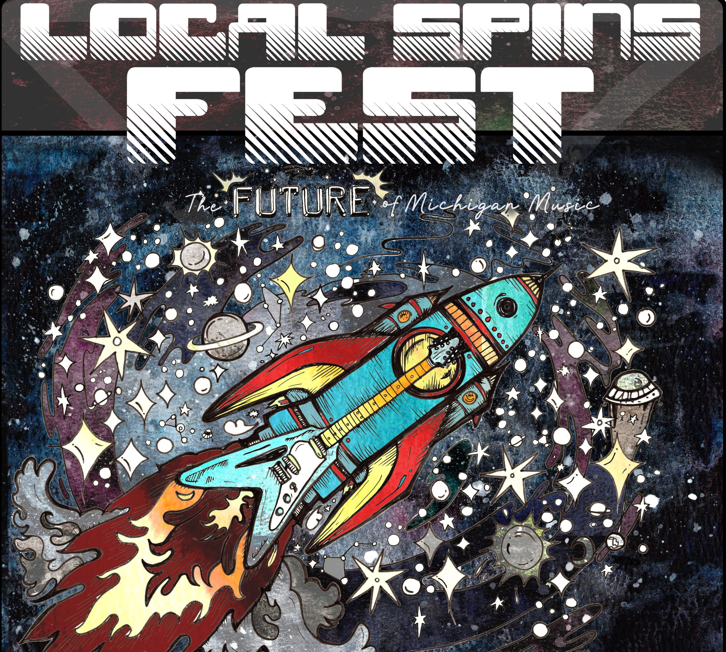 So, with the May 18 Local Spins Fest at Grand Rapids’ Studio Park showcasing inventive, up-and-coming West Michigan artists as well as teen bands under the banner, “The Future of Michigan Music,” the image of a rocket ship seems an ideal way to represent the event — especially when integrated with the iconic “Flying V” electric guitar.