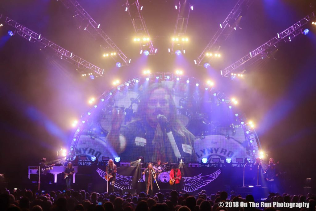 Workin’ for MCA, Skynyrd Nation, What’s Your Name, That Smell, Travelin’ Man, The Needle and the Spoon, Saturday Night Special, Red White & Blue (Love It or Leave), The Ballad of Curtis Loew, Tuesday’s Gone, Don’t Ask Me No Questions, Simple Man, Gimme Three Steps, Call Me the Breeze, Sweet Home Alabama. ENCORE: Free Bird