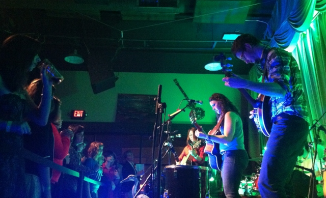 Members of The Ragbirds and The Crane Wives gathered side stage to cheer Lindsay Lou and crew at Founders.