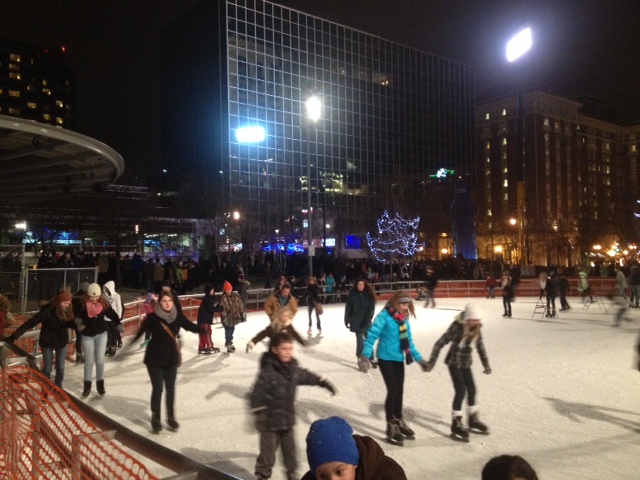 Skate On: Oblivious to the raucous New Year’s Eve stage show behind them, some just skated into 2013 at Rosa Parks Circle.