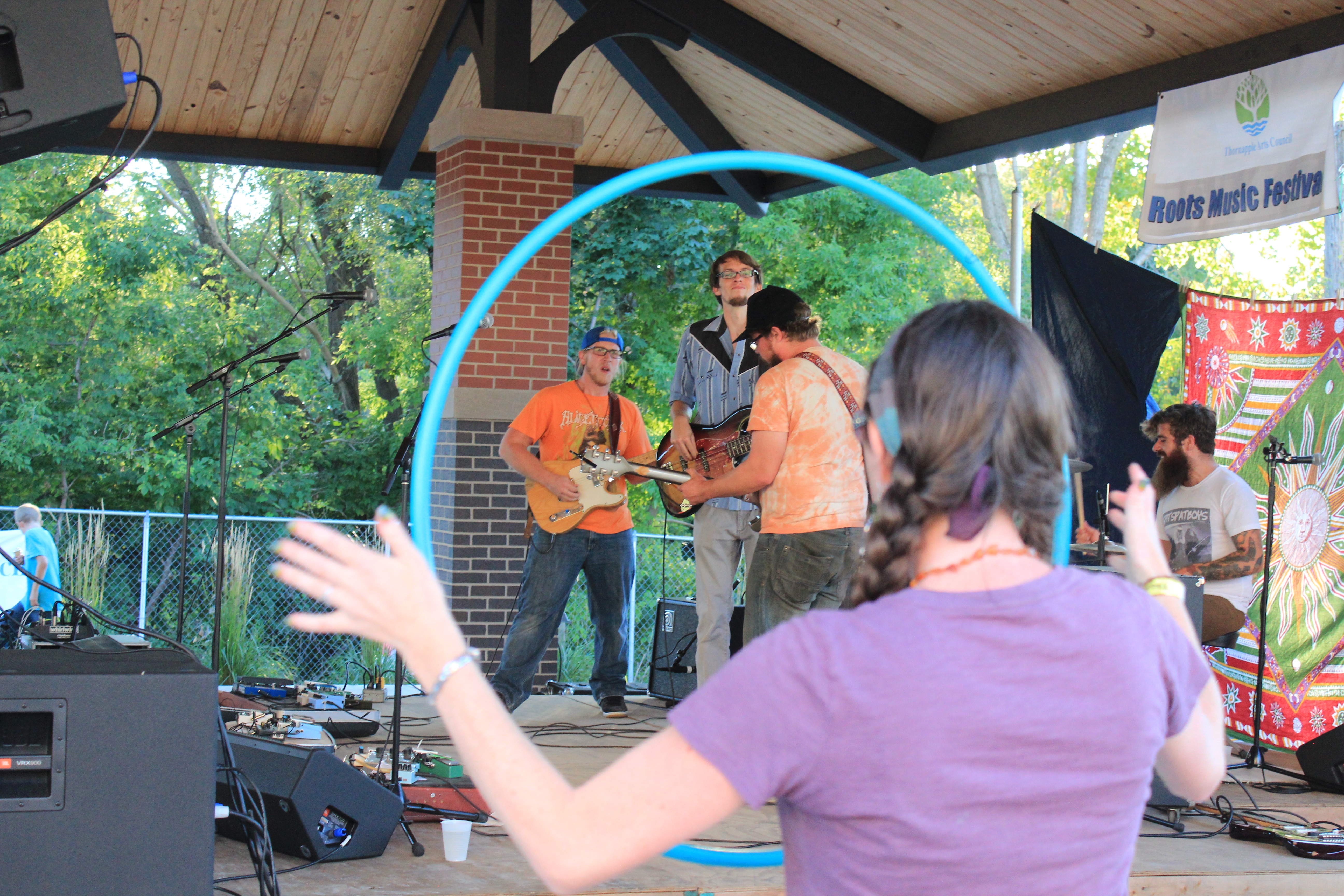 Big Dudee Roots: Framed by a hula hooper, Big Dudee Roo performed Saturday at the Barry County Roots Music Fest. (Photo/Anna Sink)
