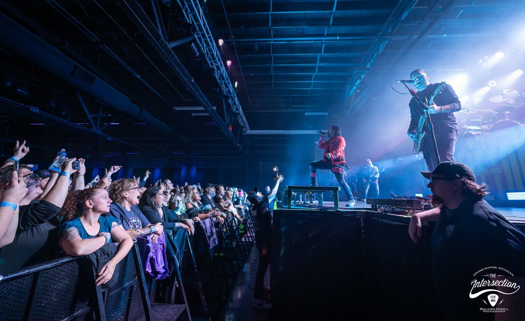 Fan-Igniting Rock: West Michigan native Leigh Kakaty and Pop Evil revving up The Intersection. (Photo/Benjamin Howell)