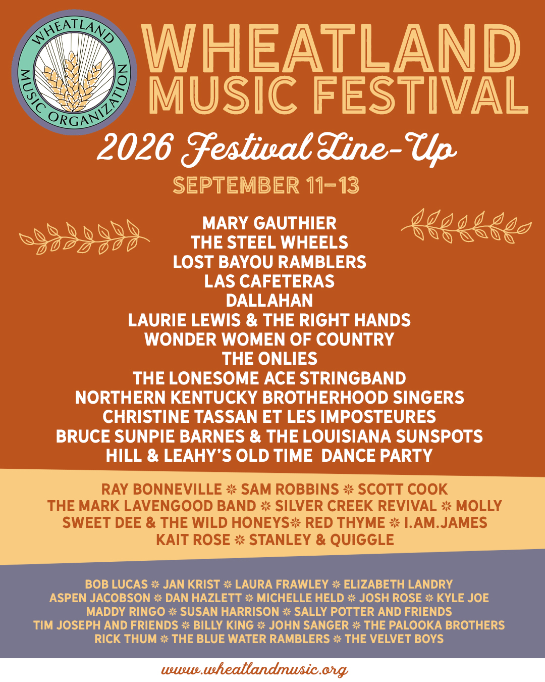 Wheatland Music Festival will roll out the 53rd edition of its three-day showcase of “traditional arts” — folks and roots music from across the glove — on its Remus festival site, Sept. 11-13, with high-profile artists such as Louisiana folk icon Mary Gauthier, Virginia bluegrass and Americana act The Steel Wheels, Cajun’s Lost Bayou Ramblers and California Chicagno folk outfit Las Cafeteras leading the charge on the 2026 bill.