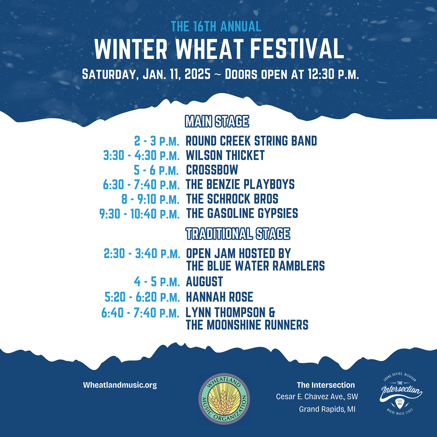 The 16th annual Winter Wheat Festival hosted by the Wheatland Music Organization rolls out next Saturday at The Intersection in Grand Rapids with 10 acclaimed and diverse acts. The playlist and schedule.