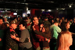 A highlight, as always, was the evening arrival of northern Michigan’s K. Jones and the Benzie Playboys. Like some wondrous Zydeco magnet, the band immediately drew crowds of dancers who swarmed toward the stage to two-step and twirl endlessly to the band’s Louisiana-fueled strains – something Winter Wheat has spotlighted at eight of the nine events held over the years. (Saturday’s turnout — though not filling The Intersection to capacity — represented an increase in attendance from 2017.)