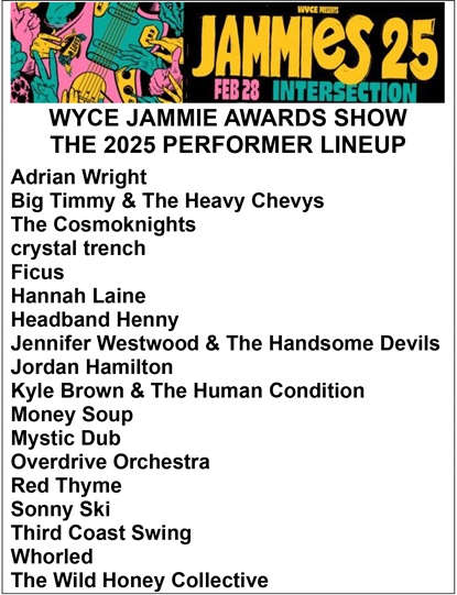 Today’s announcement of the performance lineup for the 2025 Jammie Awards being hosted by community radio station WYCE (88.1 FM) at The Intersection on Feb. 28 has plenty of bands and solo artists buzzing for the reasons expressed by Wright and Greene.