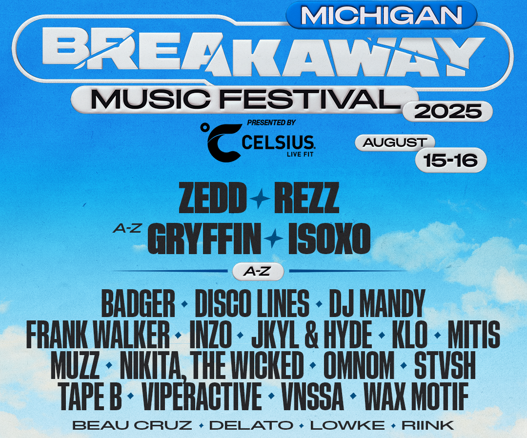 The Michigan festival unfurling Aug. 15-16 will feature 20 national touring acts and four regional DJs (Beau Cruz, DELATO, Lowke and Riink), part of Breakaway’s ever-expanding lineup of 12 music festivals taking place across the country this year.